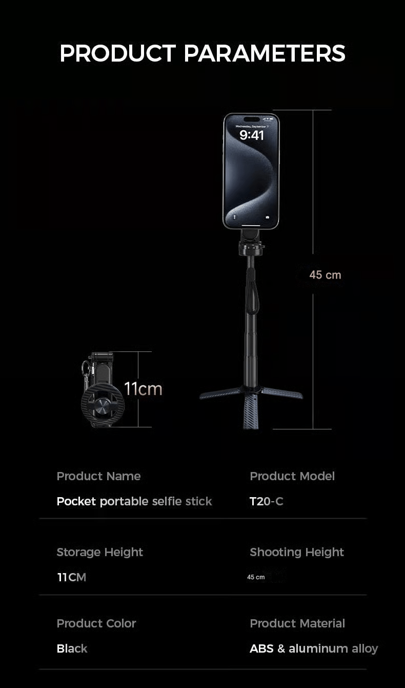 Unlike standard selfie sticks, it features a smart bayonet holder for easy remote storage and access. The wireless shutter works up to 10 meters, so you can snap perfect solo shots with just one click! 📷✨